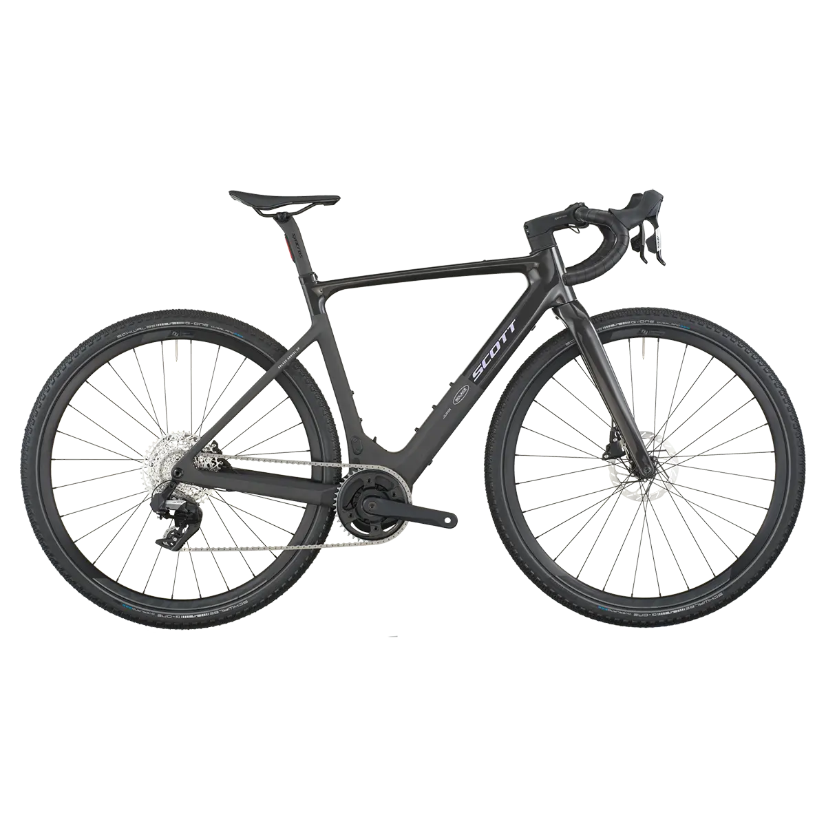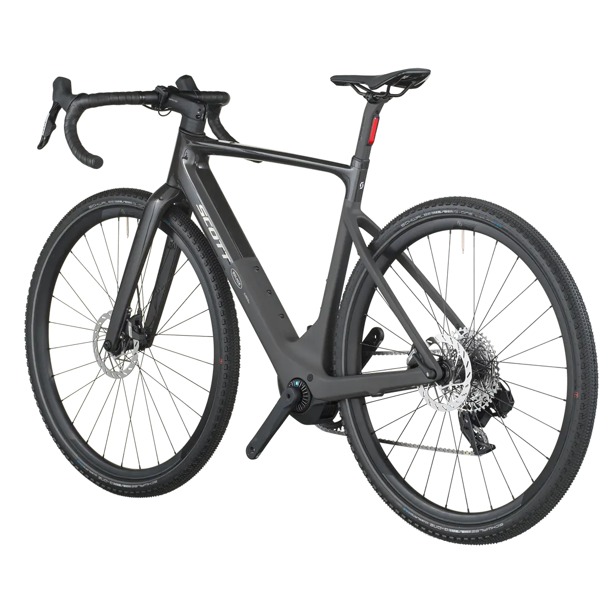 Controlling all the torque into forward propulsion are 50mm Schwalbe G-One Overland tires that provide critical traction on high-slip slopes and cushion to roll over rough terrain when you’re going flat out with Solace’s new powerband.